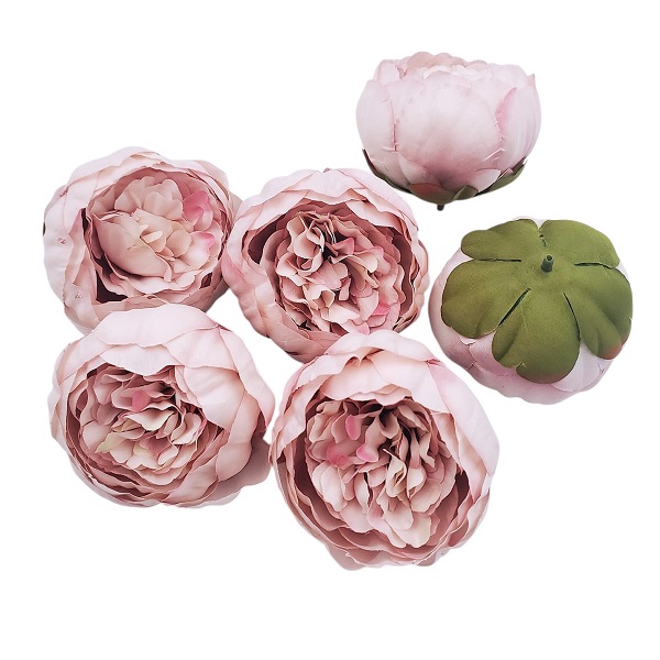 Capete de flori artificiale tip bujor, cu diametrul de 8 cm, realizate pentru utilizare profesională în florării și activități de decor. Culoarea roz oferă un aspect elegant și versatil, ușor de integrat în aranjamente florale clasice sau moderne. Setul conține 6 bucăți, fiind eficient pentru producție și revânzare.