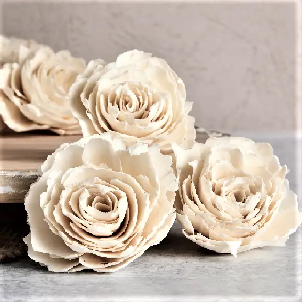 Flori lemn reconstruite artizanal din scoarța de copac natural uscat. Flori Sola. Sola Flowers.