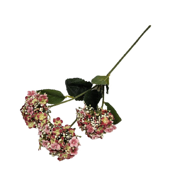 este o replică realistă a florii naturale, creată pentru a oferi volum, culoare intensă și eleganță de durată în orice tip de decor. Florile bogate, dispuse în trei inflorescențe, reproduc fidel textura și forma hortensiei naturale, fiind ideale pentru aranjamente florale decorative, vitrine comerciale sau proiecte floristice profesionale.