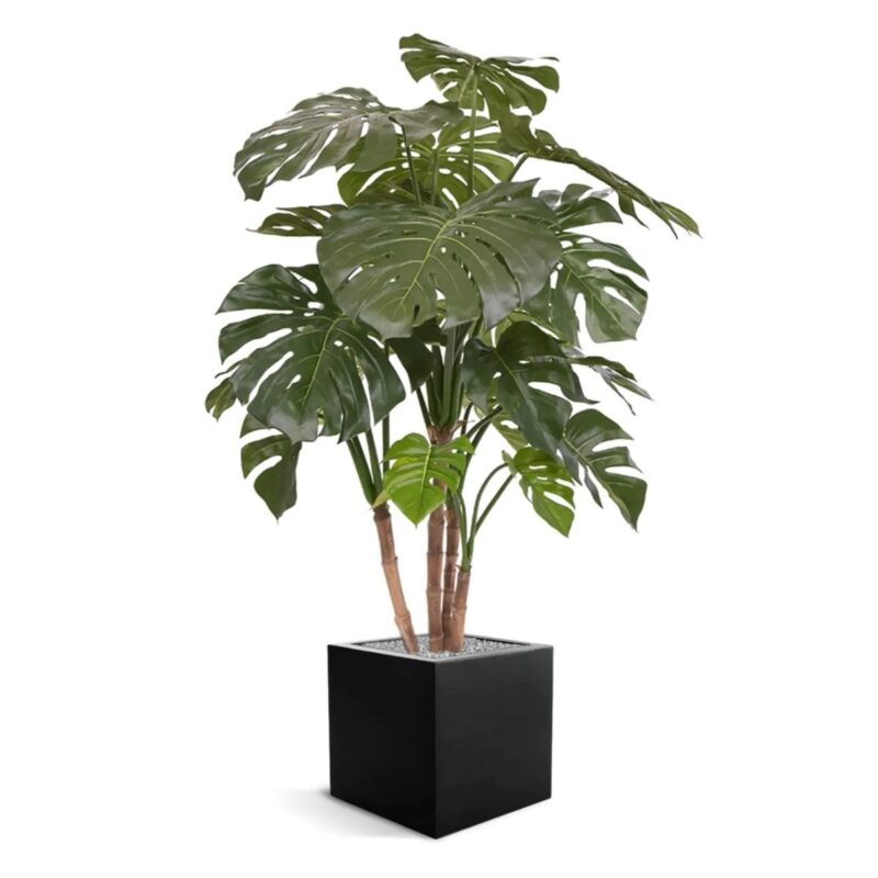 Copăcel artificial premium in ghiveci basic de culoare maro. Frunze textile in frumoase nuanțe de verde cu accente galbene si aramii.