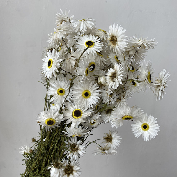 Buchet flori uscate de tip Margareta Acroclinium. Perfecta pentru martisoare, marturii nunta, marturii botez, invitații personalizate, aranjamente florale etc. Flori cu diametrul de cca 3-4 cm.