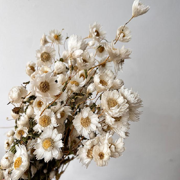 Buchet flori uscate de tip Margareta Rodanthe. Perfecta pentru marturii nunta, marturii botez, invitații personalizate, aranjamente florale etc.