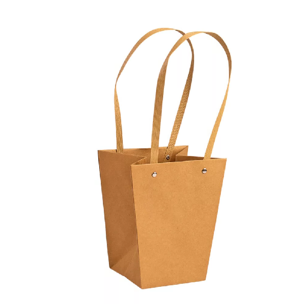 Sacoșa din hârtie kraft cu mânere pentru manevrabilitate.